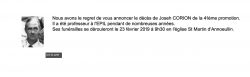 Nous venons d’apprendre le décès de Joseph CORION, ancien élève de la 41ème promotion, et ancien professeur à l’EPIL pendant de nombreuses années. Il était malade depuis plusieurs mois et très souvent hospitalisé. Ses funérailles se dérouleront le 23 février…